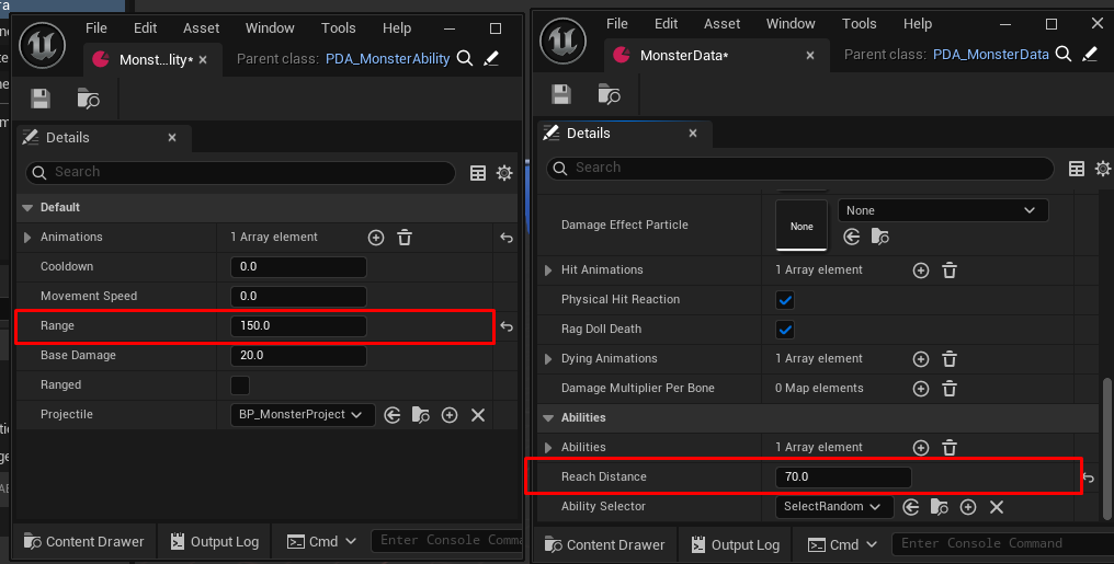 You will notice that the monster overlap with the horror engine player character It’s like trying to go through the player, you can fix this by increasing the “reach distance” in the monster data asset and increase the range of the ability
